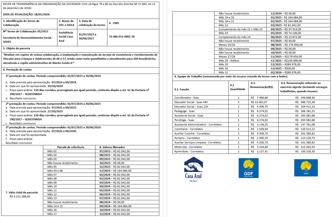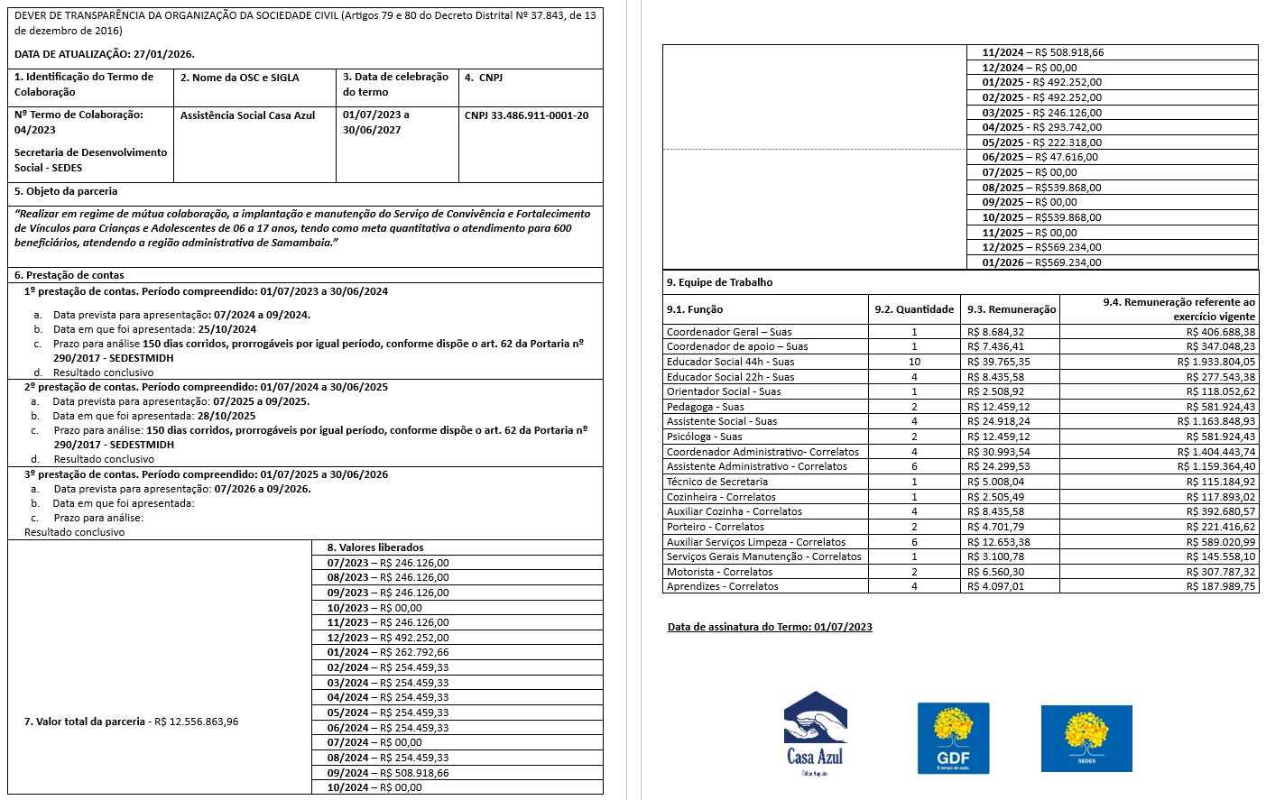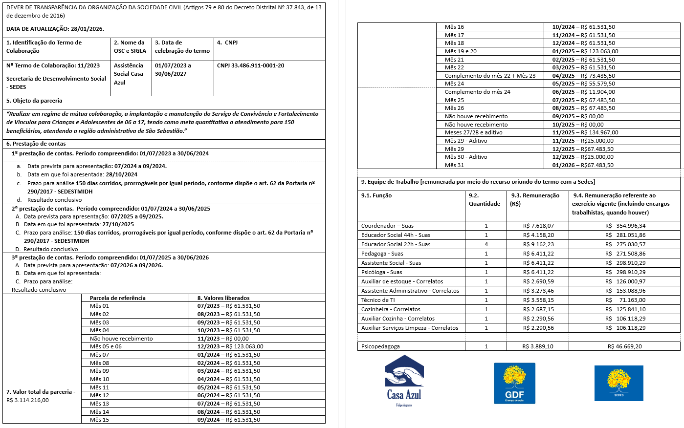 Sedes DFTermo de Colaboração nº 04/2023 – SAMAMBAIA - SEDESTermo de Colaboração nº 05/2023 – RIACHO FUNDO II - SEDESTermo de Fomento nº 06/2023 – RIACHO FUNDO II - SEDESTermo de Colaboração nº 11/2023 – AABB (SÃO SEBASTIÃO) - SEDES